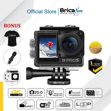 Brica B-Pro 5 Camera Action Camera Outdoor Camera Vlog Alpha Edition Mark III X (AE3X) EIS Black - Free T-Shirt - Garansi Brica Indonesia