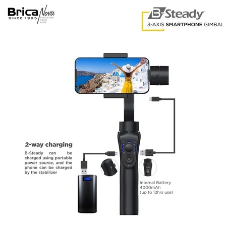 Brica B-Steady - 3 Axis Smartphone & Action Cam Gimbal - Hitam - Free Tripod Mini - BS1 Brica Official Store